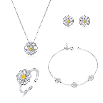 S925 כסף חרצית טבעת עגילי צמיד שרשרת אירופאיות ואמריקאי סטרלינג כסף ארבעה-חתיכה להגדיר